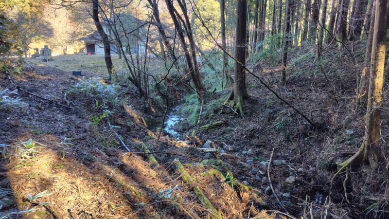 登山口を入ったところで、直ぐに沢を渡るのが正しいルートです。
