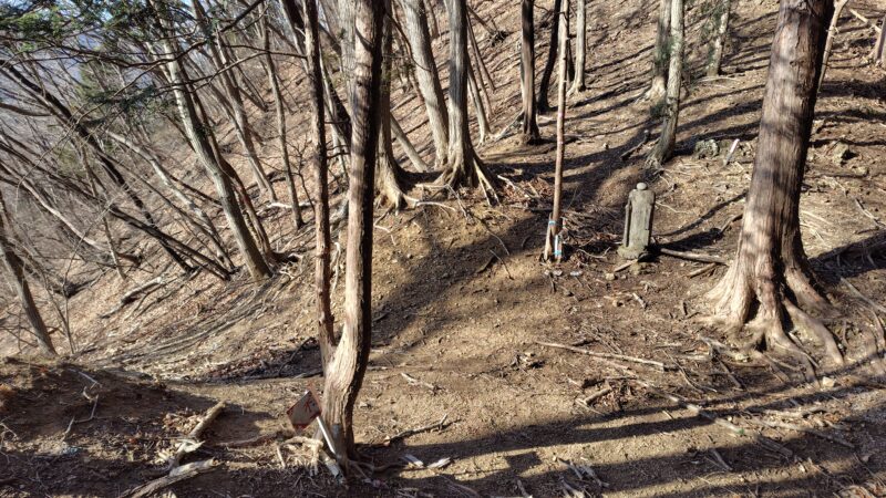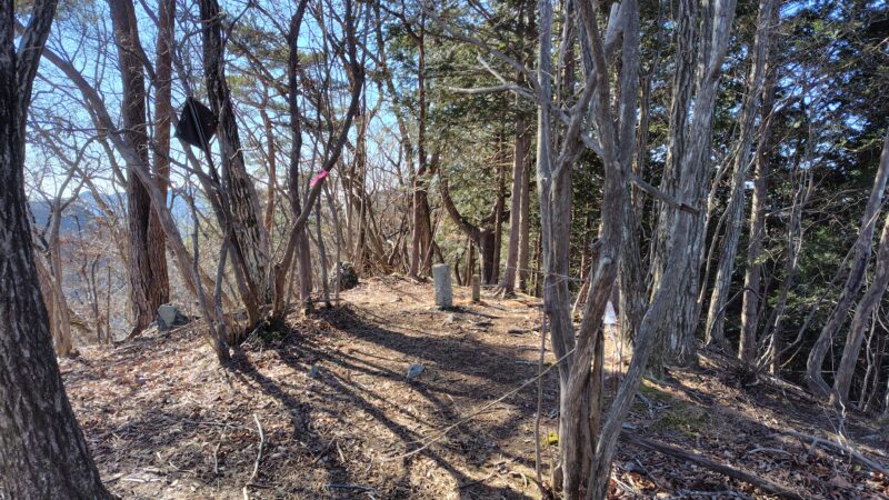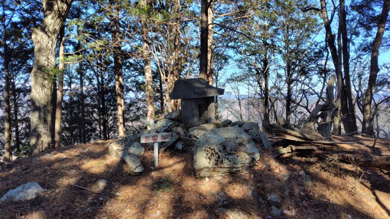 石祠があり、冬場なので木々の隙間から多少の展望といった感じ。