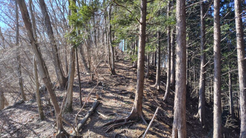 ここも尾根を歩いていきますが、雷電山までよりは穏やかな道です。