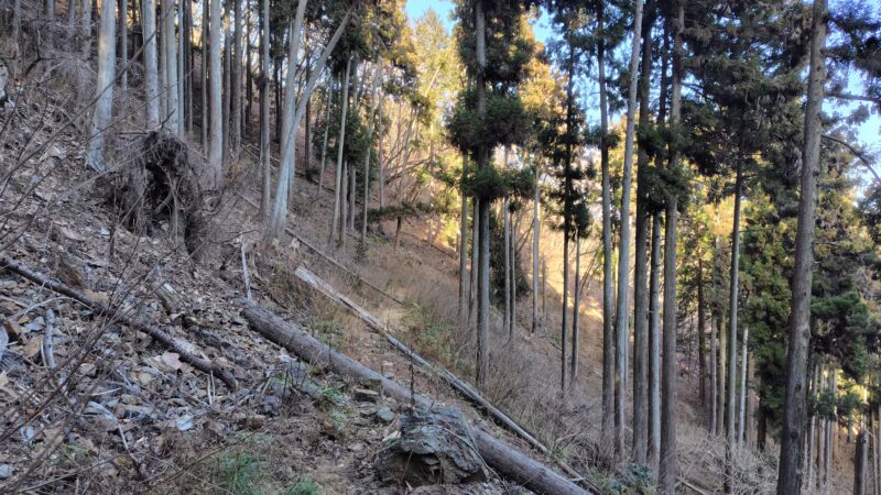 途中で、作業道と交差します。
