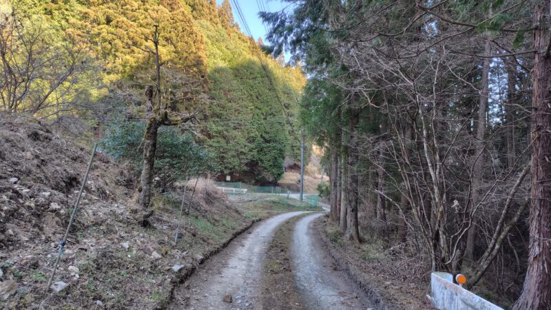 塩沢峠からは斜面をを下り、林道へ出ます。
