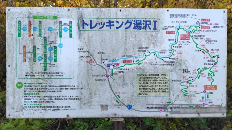 現地の案内板を見て初めて知りましたが、「トレッキング湯沢1」というコースになっているみたいです。