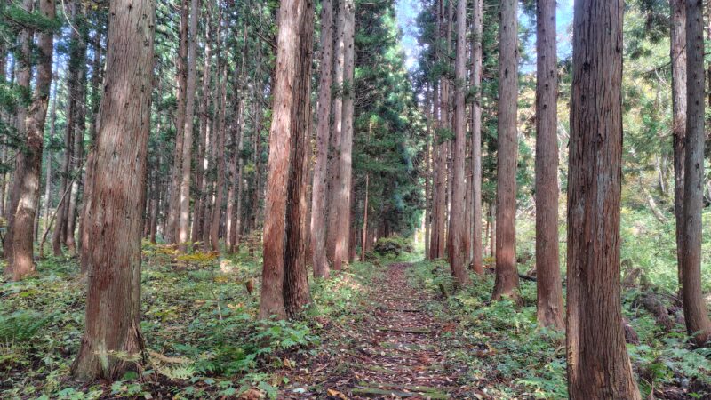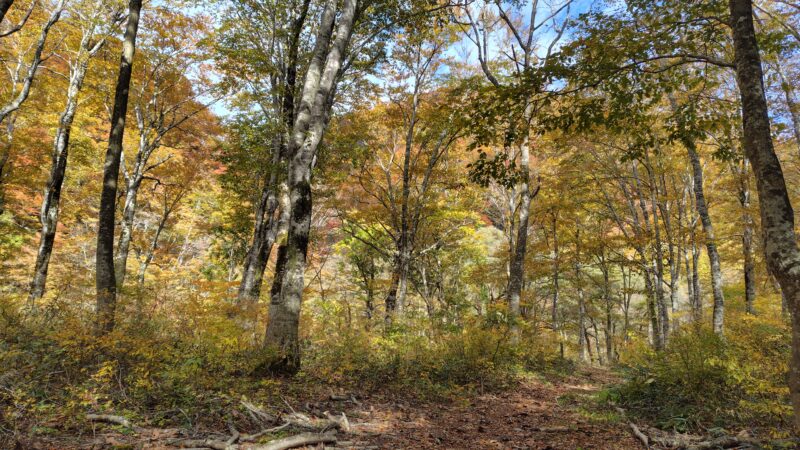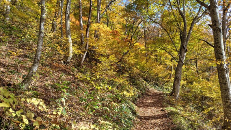 写真だと伝わりにくいですが、ここのブナの木がとても大きく、自然の雄大さを感じる心地よい道です。