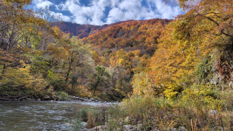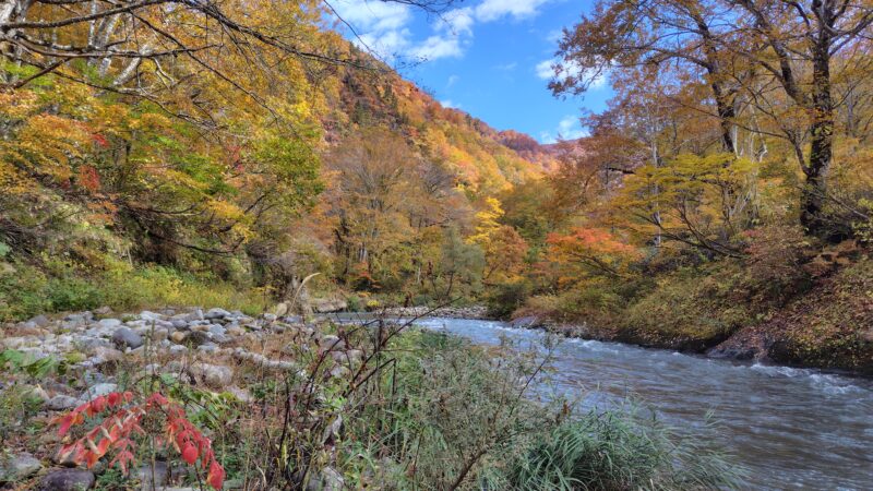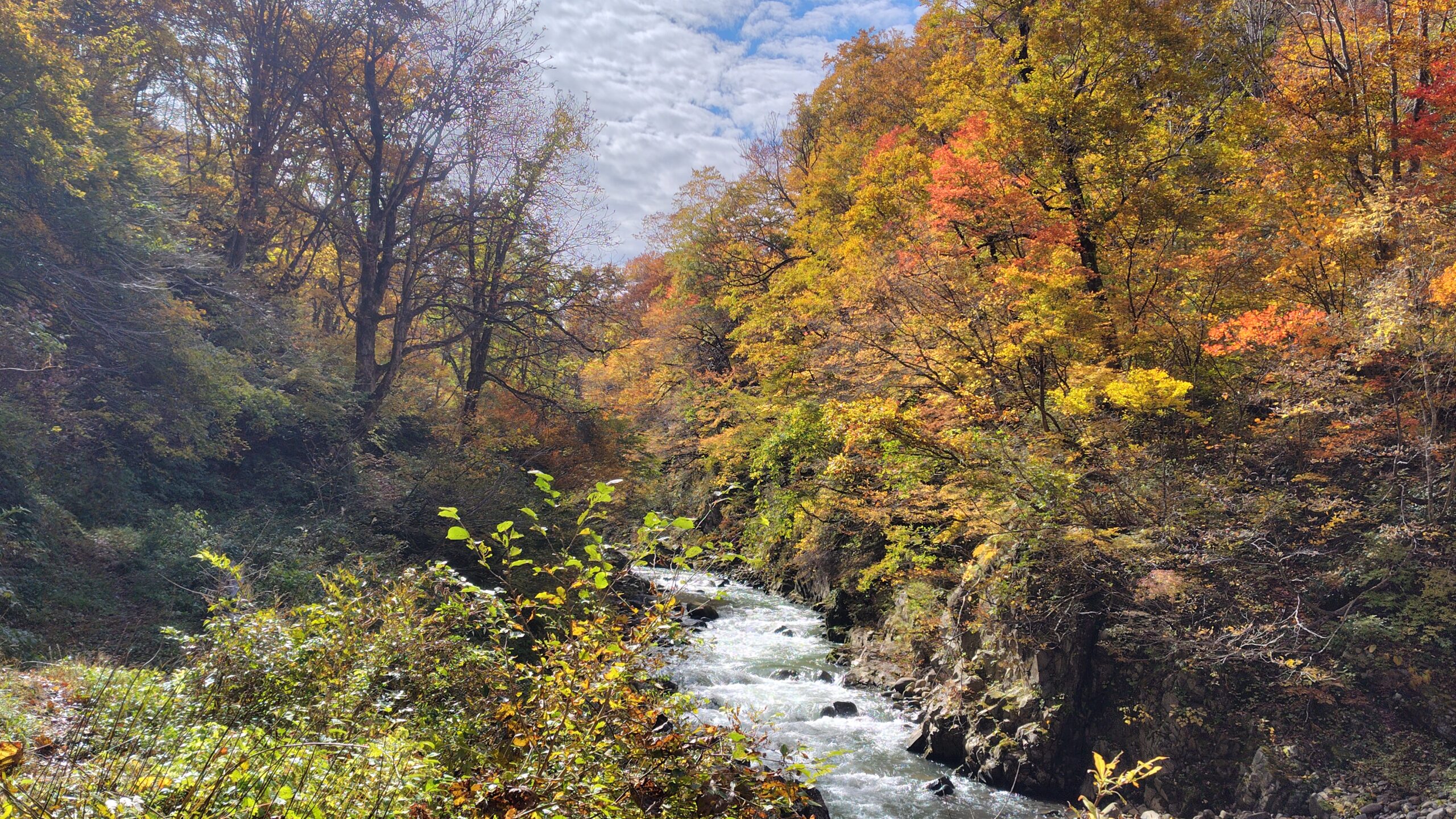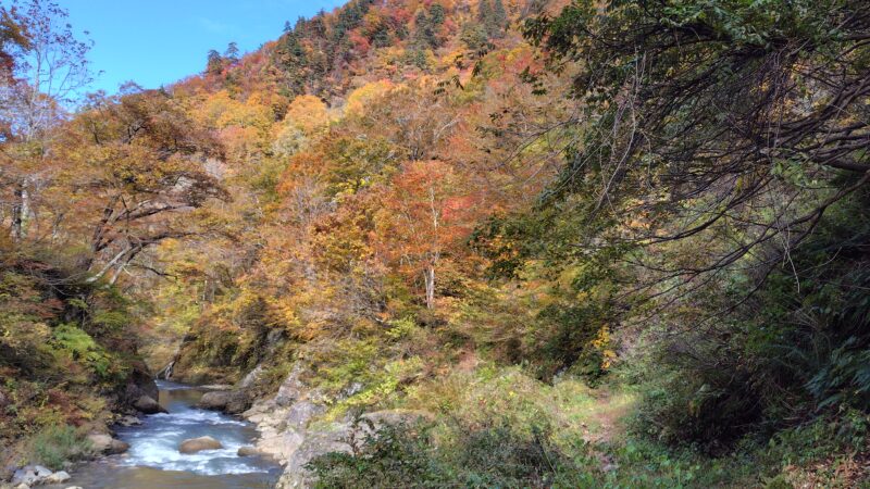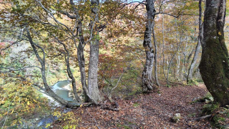 ノンビリと歩くには丁度よい感じで、清津峡とブナの木が目を楽しませてくれ、当日は好天と紅葉も相まって良いお散歩になりました。