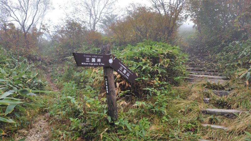 三国山山頂から、手前の分岐まで道を戻り、平標山方面へ向かいます。