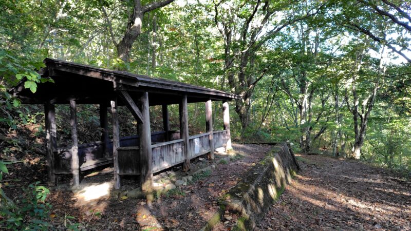 東屋のところに分岐があるので、ここから駐車場の方へ下ります。