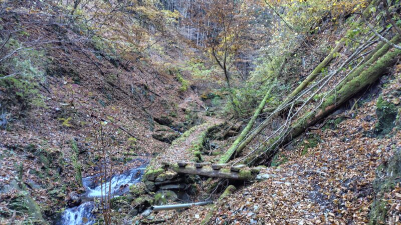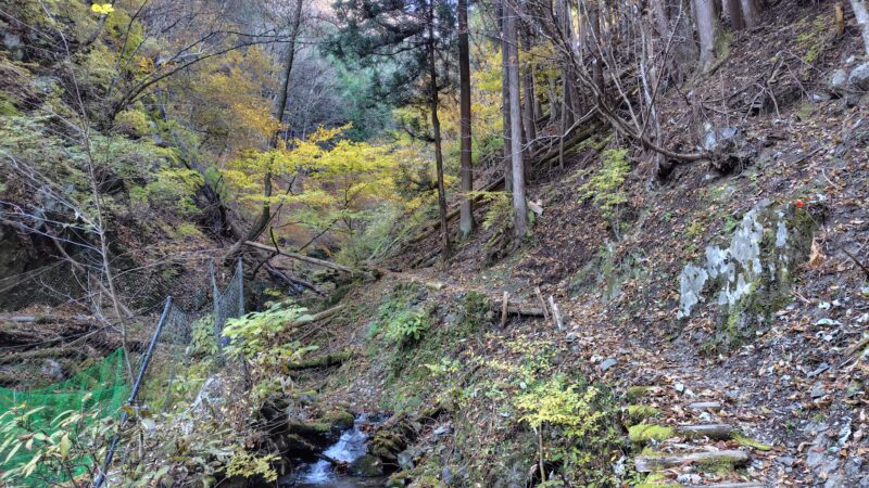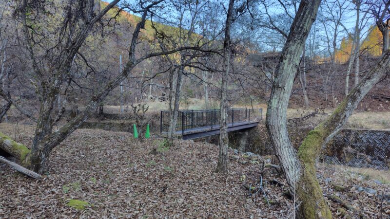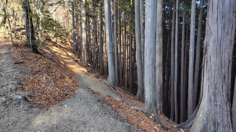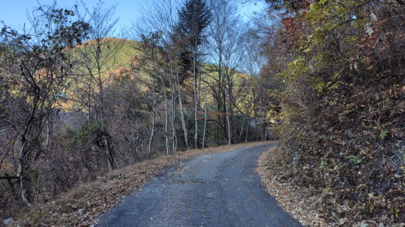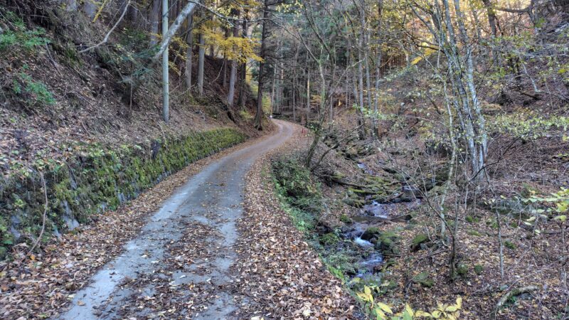 北側の斜面なので、あまり日が差し込まず、写真や映像ではイマイチ魅力的に写り込みませんが、キリッとした空気と僅かに残った紅葉がなかなか良い穏やかな道です。