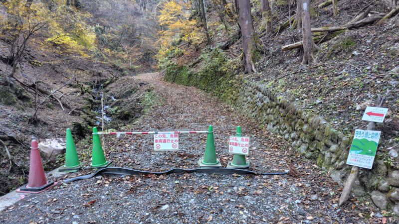 「車両通行止」の案内があり、この先から山道に入ります。