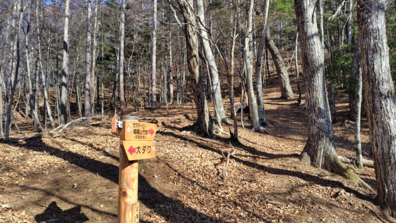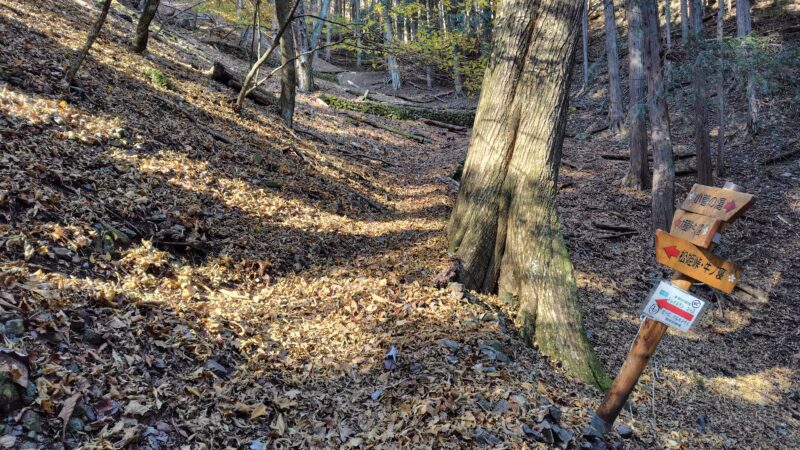 沢を離れ、少し急な道を越えると、分岐に到着です。