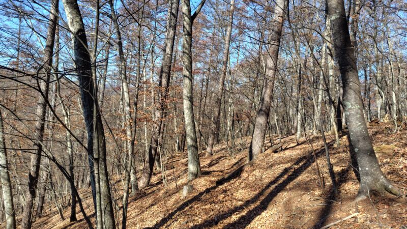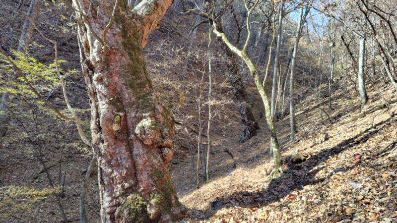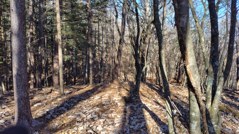 今回のコースは、全体的に緩やかな道が多くて、林道終わりからの谷筋の辺りや、鶴寝山辺りの広い尾根道は特に魅力的でした。