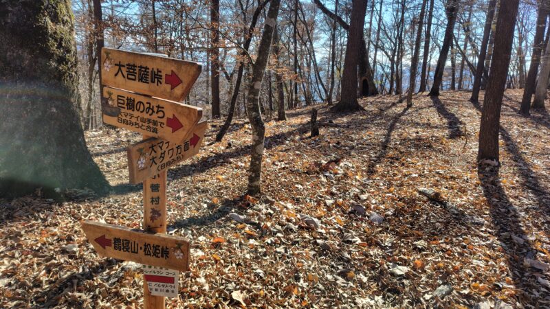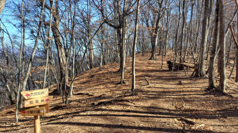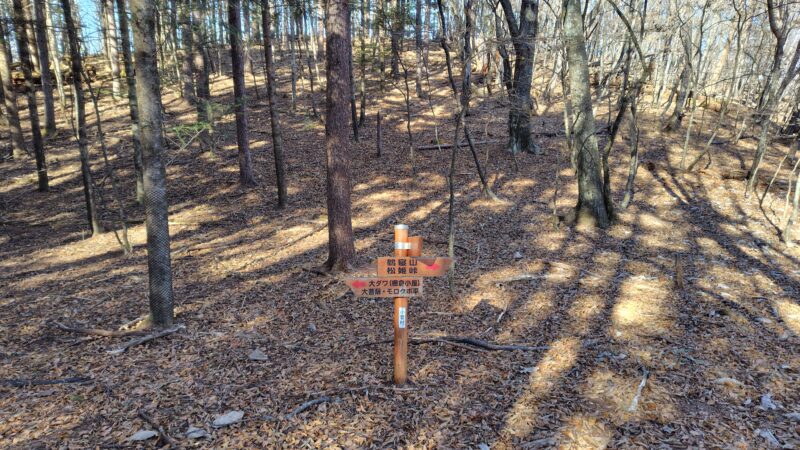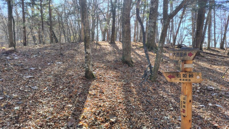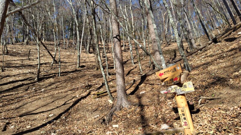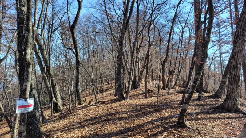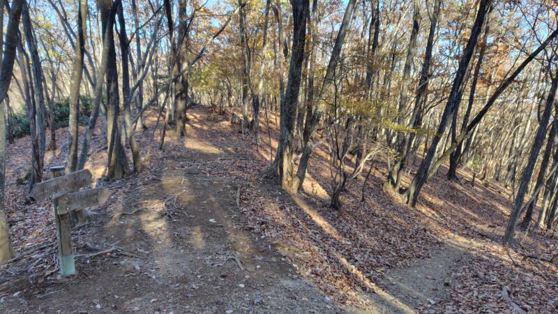 この周辺は、山頂へ向かう尾根の道と、山頂をかわす巻き道の2本が通っています。