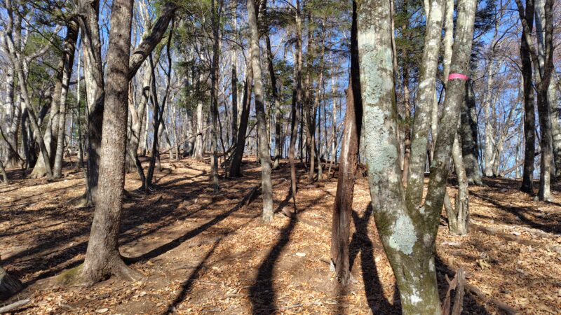 山頂近くは、また落ち葉で道が分からないので、何となく進みます。