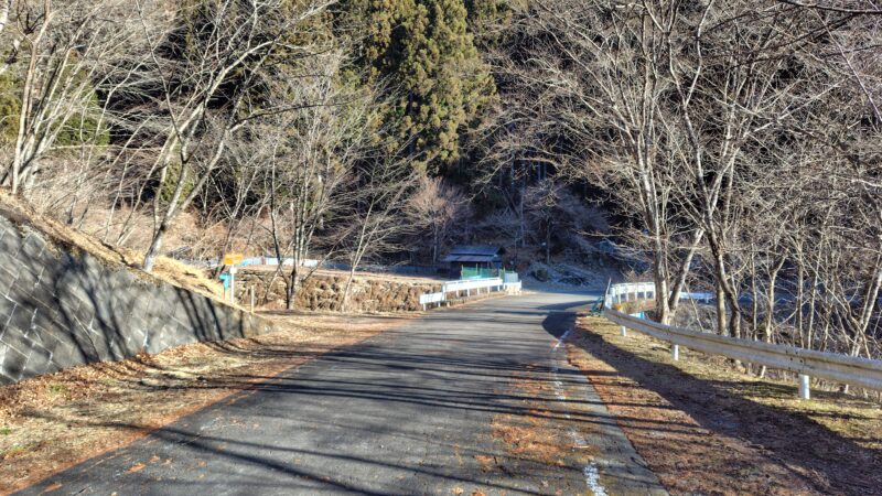 左カーブの右側に、平らな土地があり、ここが白髪岩登山口です。