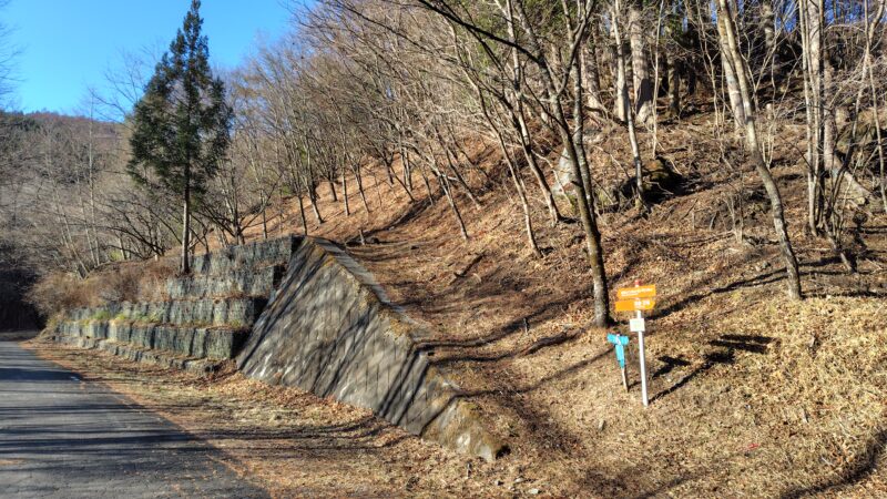 御僧尾根登山口は、オレンジ色の道標が出ているので、分かりやすいです。