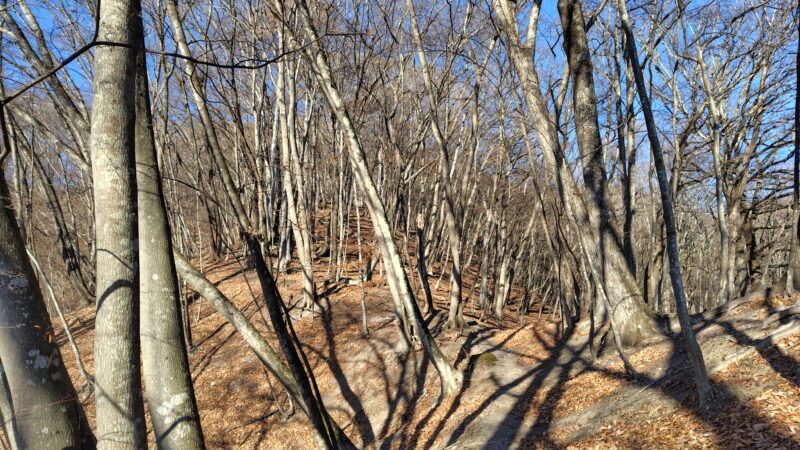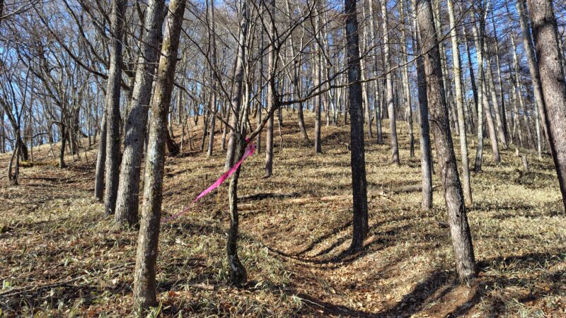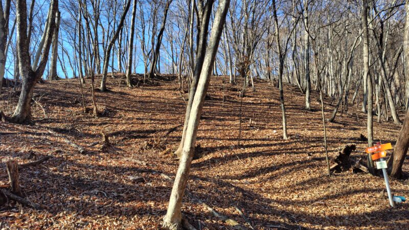 まずは斜面を登り、尾根に出ます。