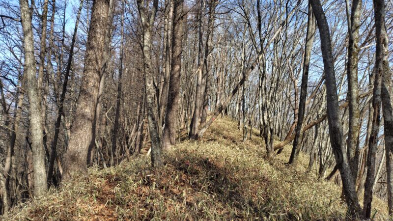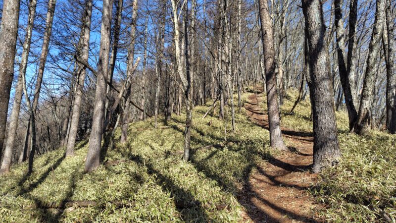 足元に笹が広がる、気持ち良い尾根道です。