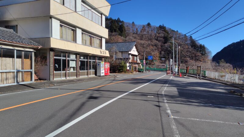 深山橋の手前、お蕎麦屋さん(かな?)の脇を抜けていきます。
